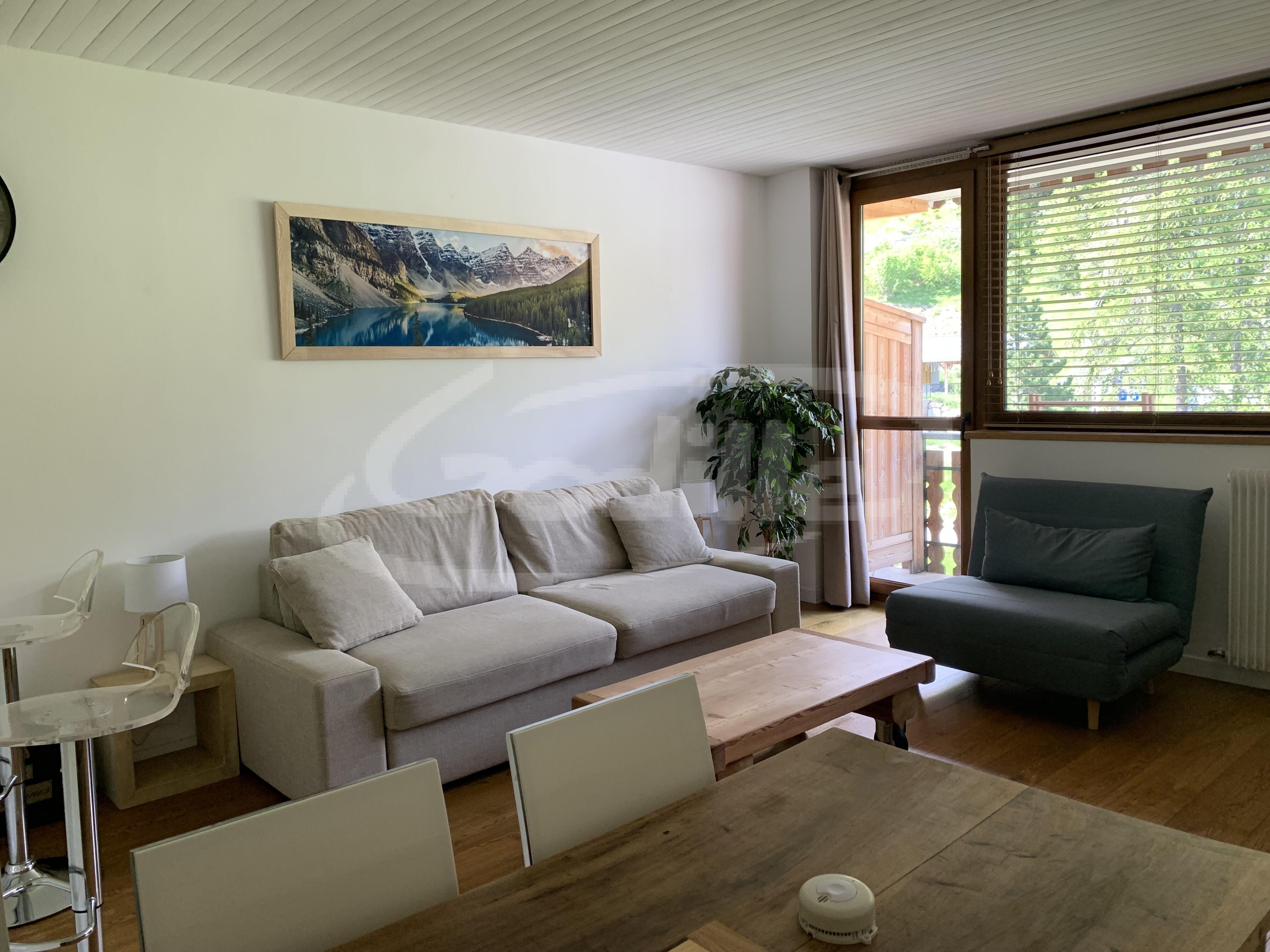 Studio pour 4 personnes, 30m² environ. Situé au 2ème étage, face aux pistes. Exposé Sud Ouest avec balcon et vue sur les pistes.