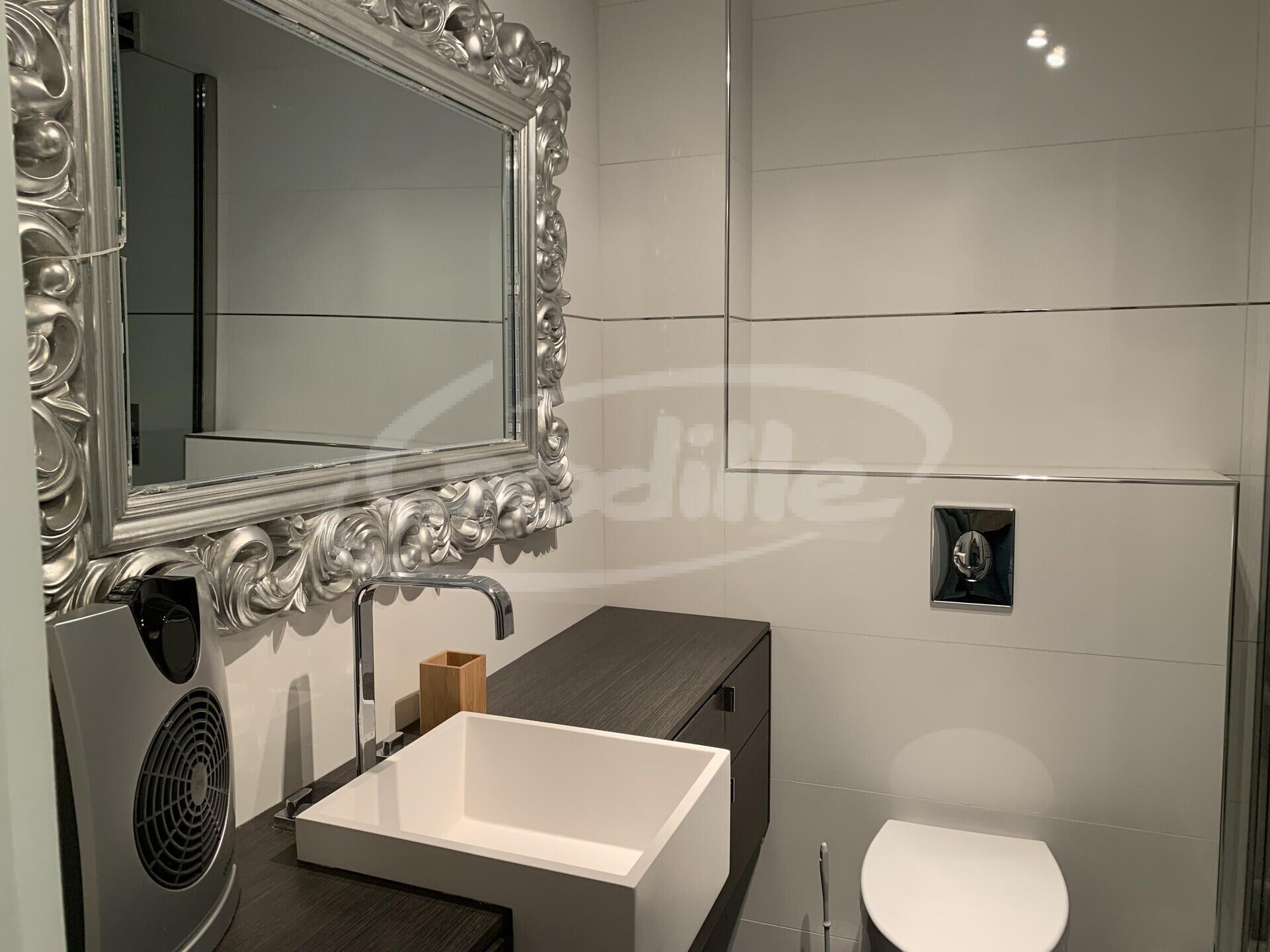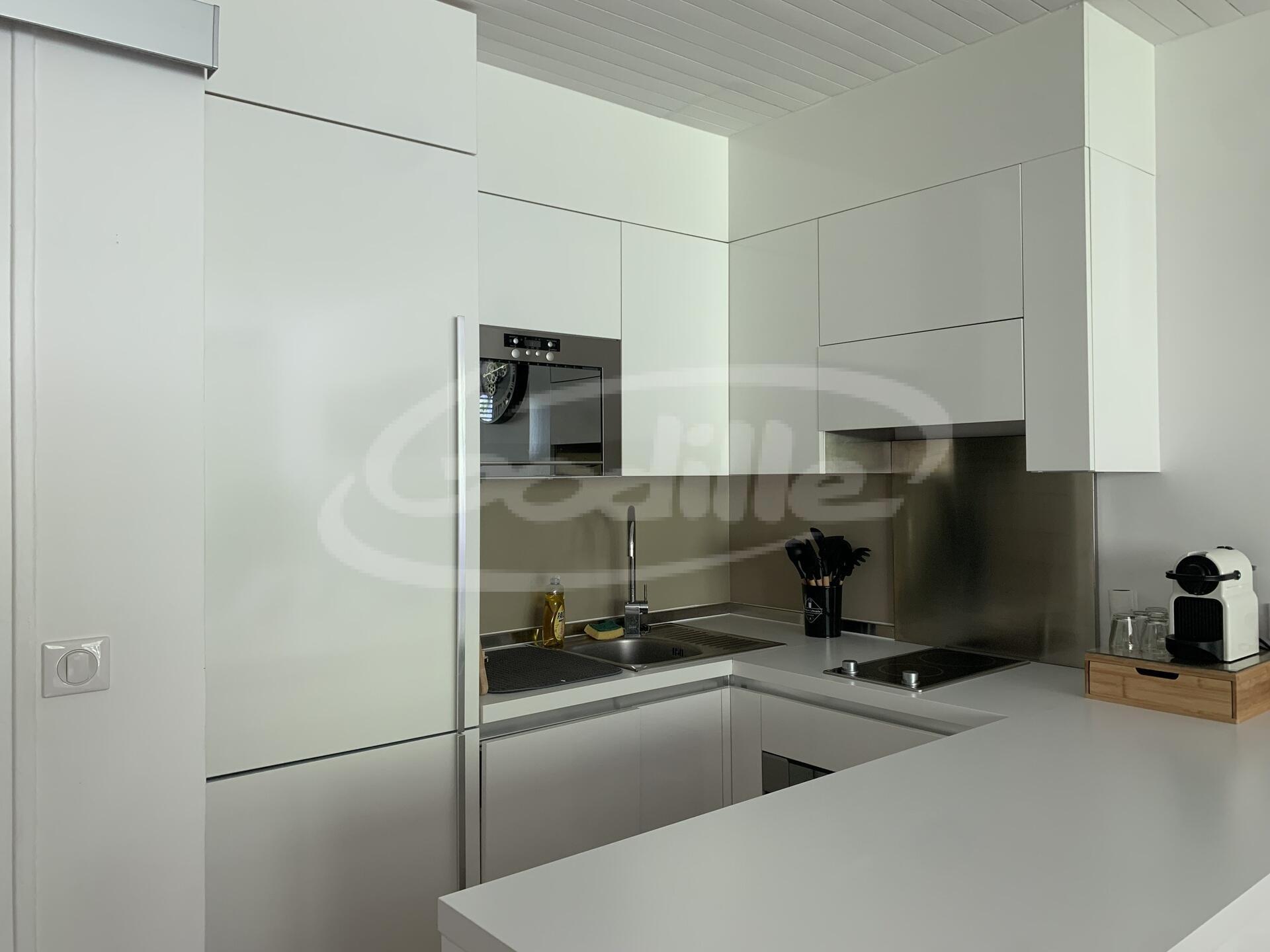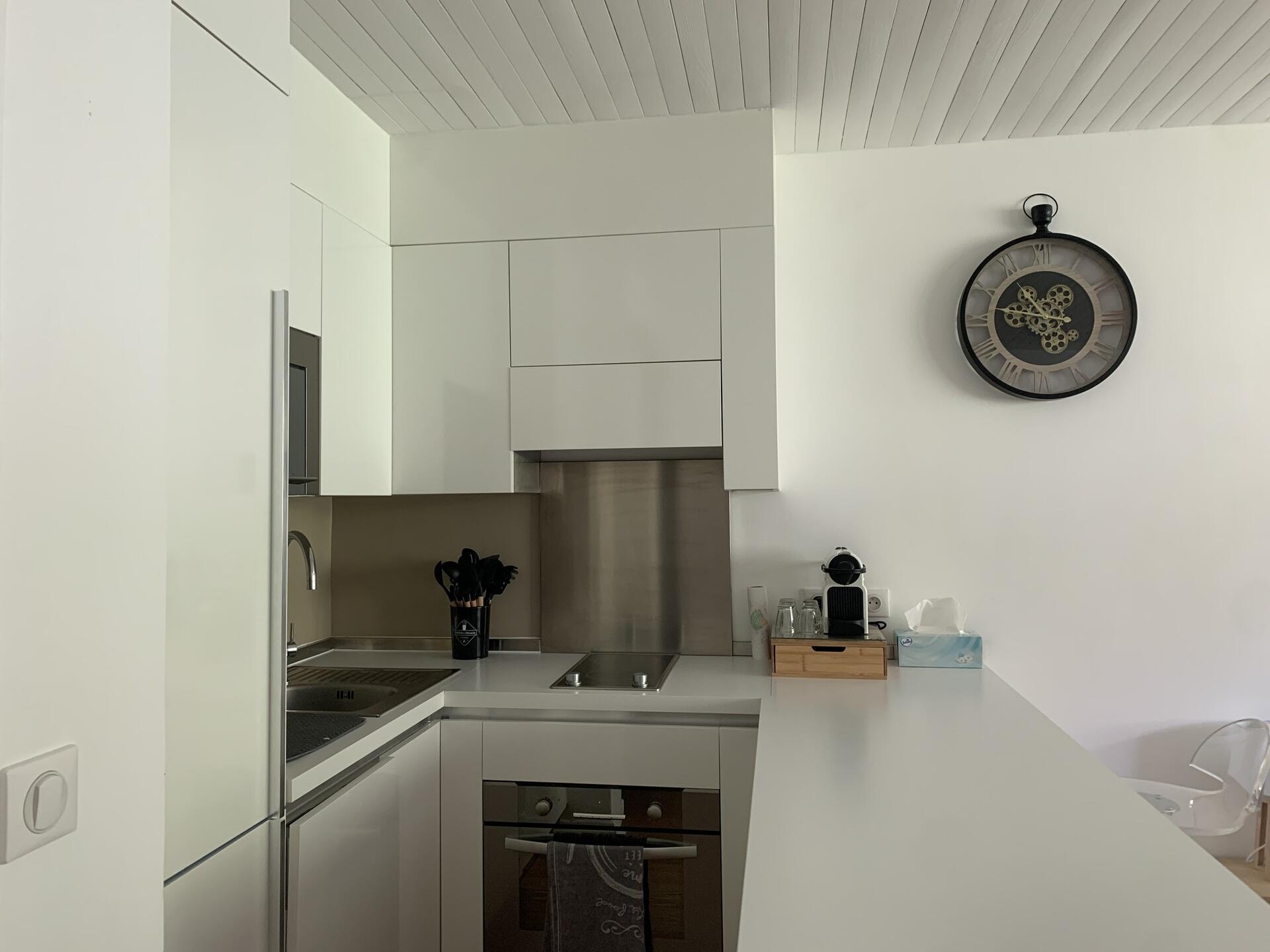 * Coin cuisine à l'américaine : four, grand réfrigérateur, plaques vitrocéramique, lave-vaisselle, Lave-linge séchant, cafetière Nespresso, bouilloire, grille pain, appareil à raclette ;
