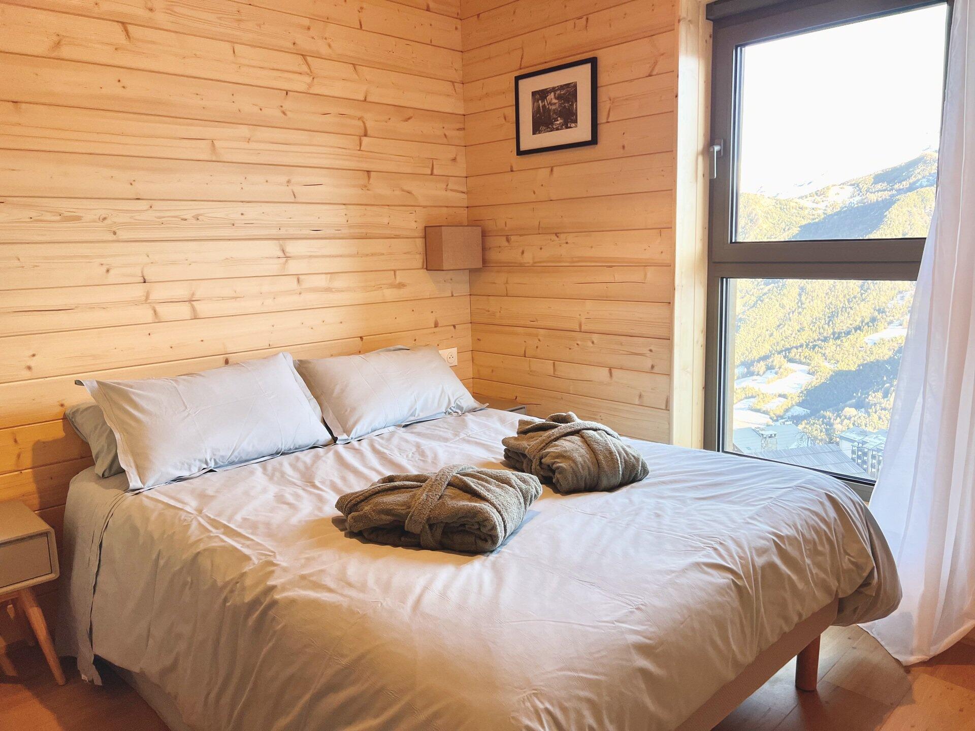 * Chambre 1 : lit double 160*200, TV HD, grande penderie aménagée ;