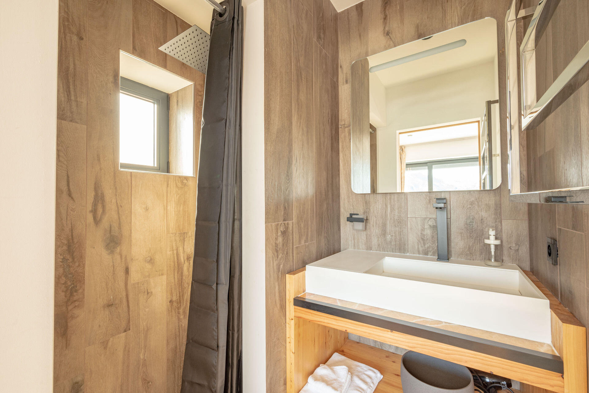 * Salle de bain 3 (attenante à la chambre 4) : douche à l'italienne, lavabo ;
