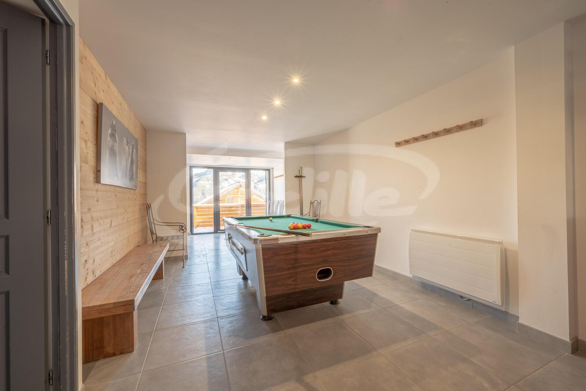 ** RDC : Entrée / Couloir : local à skis, pièce avec billard ;
