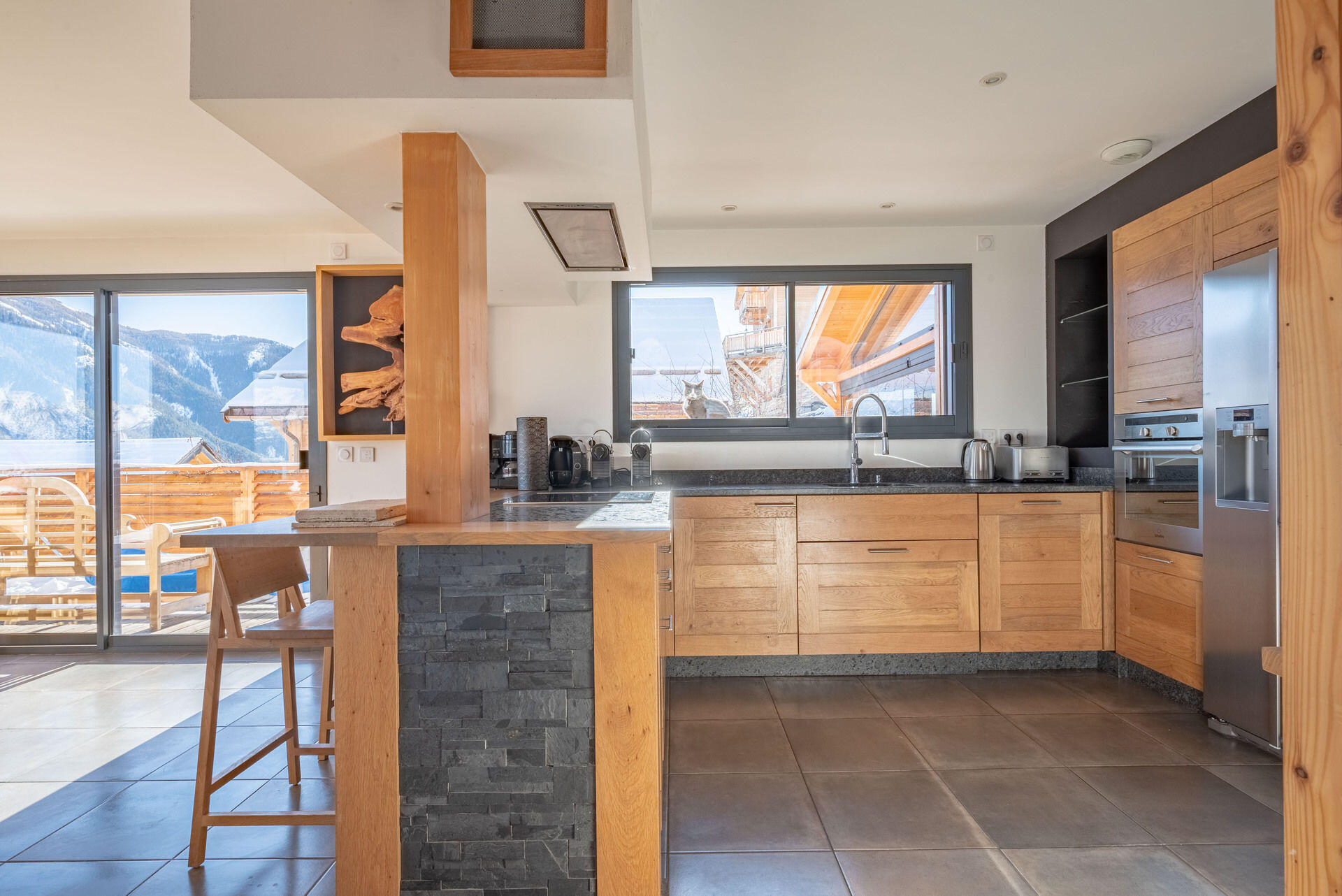 * Cuisine américaine : lave-vaisselle, micro-ondes, plaques induction, four, réfrigérateur américain/congélateur, cafetière Nespresso et Tassimo ;