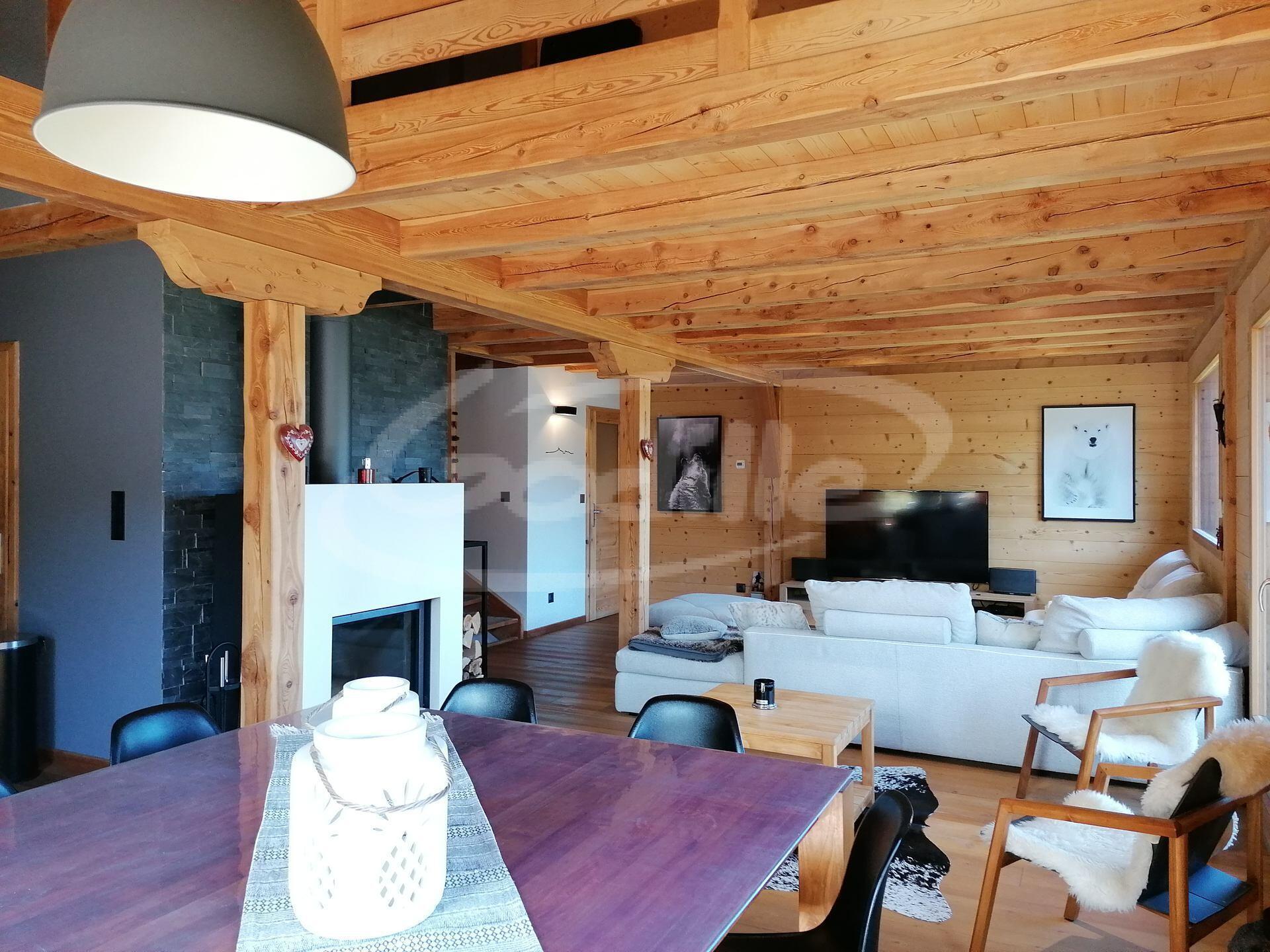 Chalet Prestige neuf pour 8 personnes, d'environ 170m² sur 3 niveaux. Exposé Sud et Est avec grande terrasse et jardin. Connexion ADSL WIFI. Lits faits à l'arrivée. Le linge de toilette n'est pas fourni avec le chalet, vous avez la possibilité de le louer auprès de l'agence avant votre arrivée.