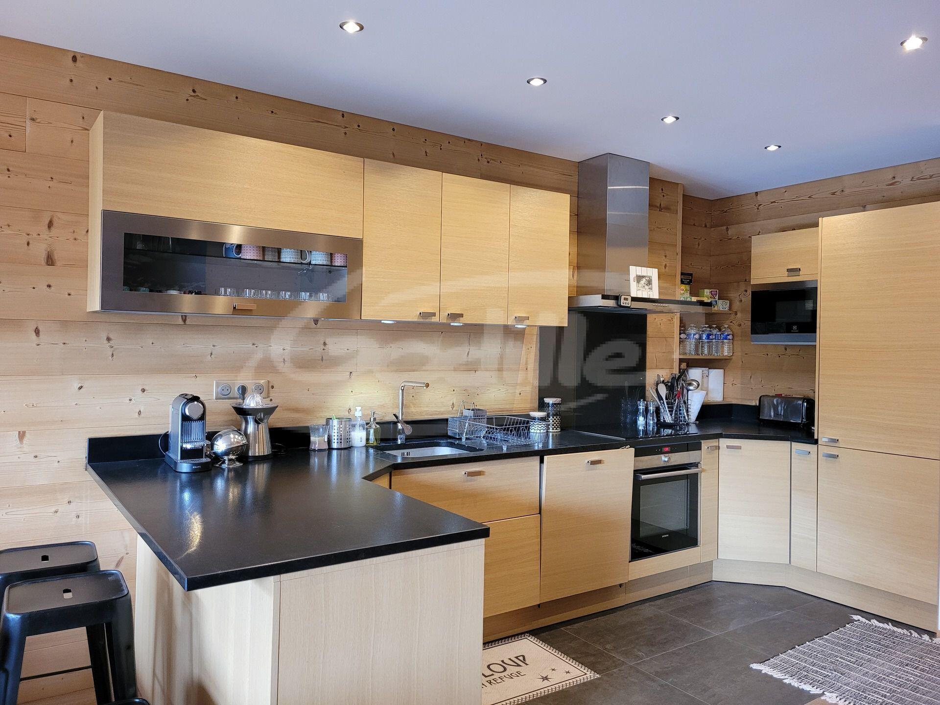 * Belle cuisine moderne et équipée ouvert sur le séjour: plaques à induction, four, micro-ondes, lave-vaisselle, réfrigérateur/congélateur, cafetière Nespresso, grille-pain, bouilloire, presse agrume, appareil à raclette, fondue et crépière, nombreux placards ;